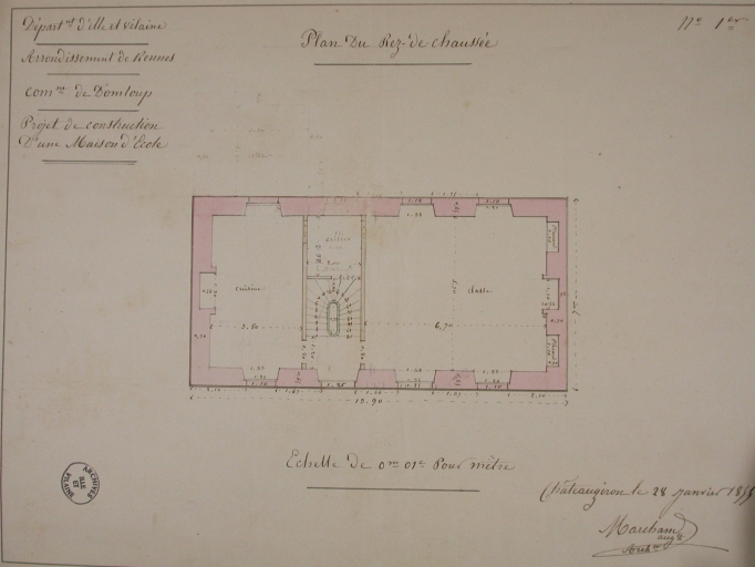 Plan du rez de chaussée de l'école, 1855Immatriculation