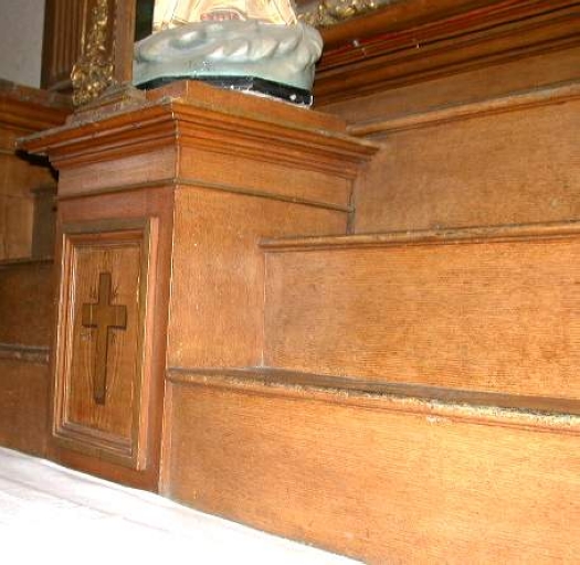 Ensemble de l'autel de la Vierge : autel, tabernacle, retable, 2 gradins d'autel, 3 degrés d'autel,