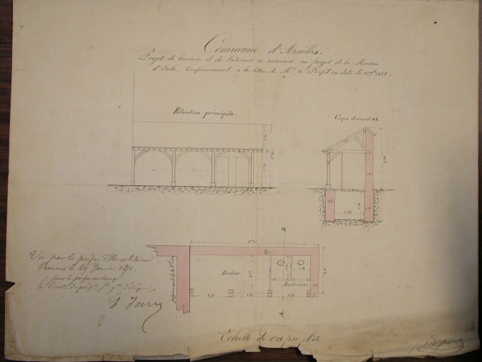 Projet de bucher et de latrines pour l'école, 1850Immatriculation