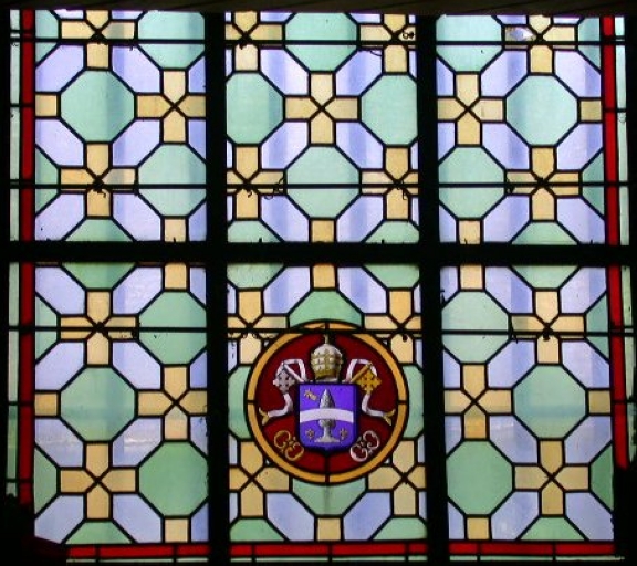 Verrière de la baie 1 : armoiries du pape Léon XIIIImmatriculation