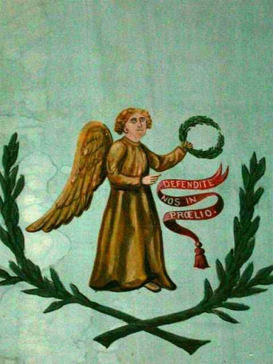 Lambris de couvrement, détail du décor : ange tenant une palmeImmatriculation