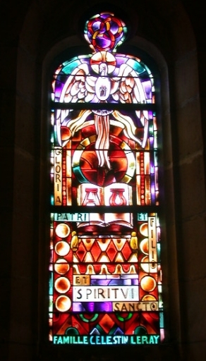 8 verrières, baies 5 à 14 : Saint Yves, Présentation de l'Enfant au temple, saint Roch, saint Esprit, Christ, Jeanne d'Arc, saint Evêque, Dieu le Père,