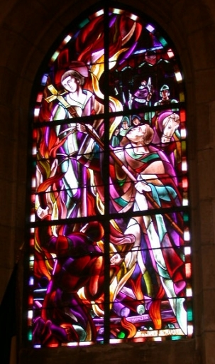 8 verrières, baies 5 à 14 : Saint Yves, Présentation de l'Enfant au temple, saint Roch, saint Esprit, Christ, Jeanne d'Arc, saint Evêque, Dieu le Père,