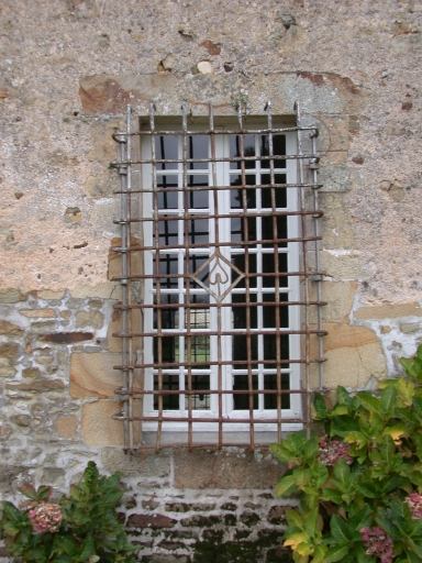 Le logis, corps principal, façade ouest, baie grillagée de la salle du rez-de-chausséeImmatriculation