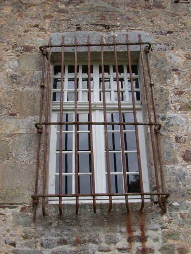 Le logis, façade ouest, baie grillagée du rez-de-chaussée sur caveImmatriculation