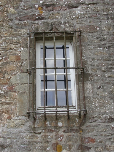 Pavillon nord-ouest, détail, baie grillagée avec accoladeImmatriculation
