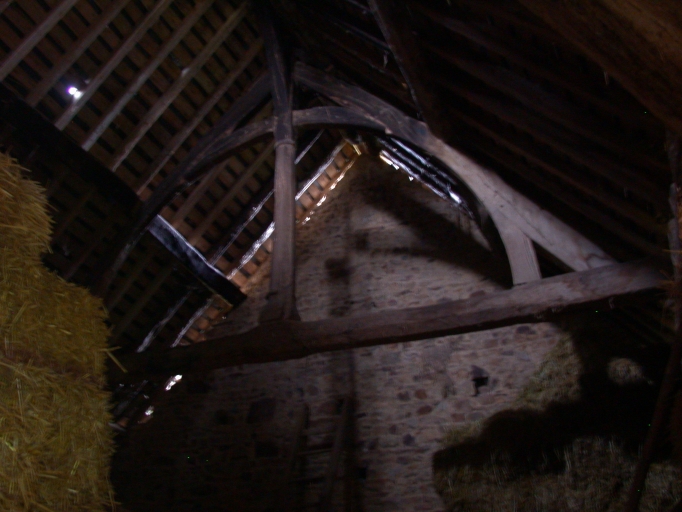 Charpente, détail du poinçon sculpté et des arbalétriers courbesImmatriculation