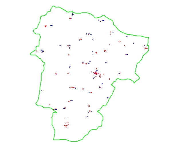 Carte du bâti antérieur au milieu du 20e siècle : en bleu, les bâtiments non documentésImmatriculation
