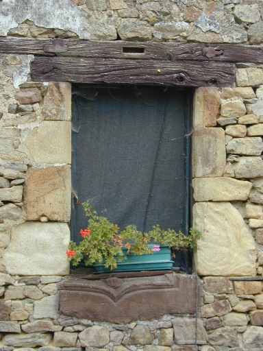 Détail d'une fenêtre du logis présentant des remplois du 15e siècleImmatriculation