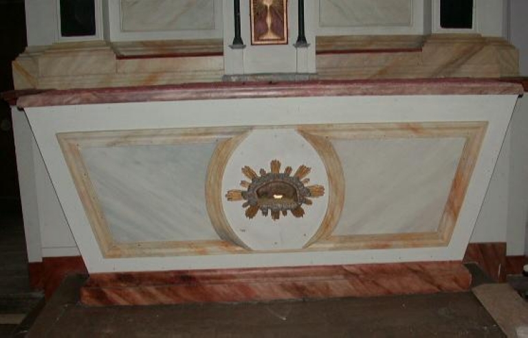 Ensemble de l'autel du Christ : autel, tabernacle, gradin d'autel, retable,