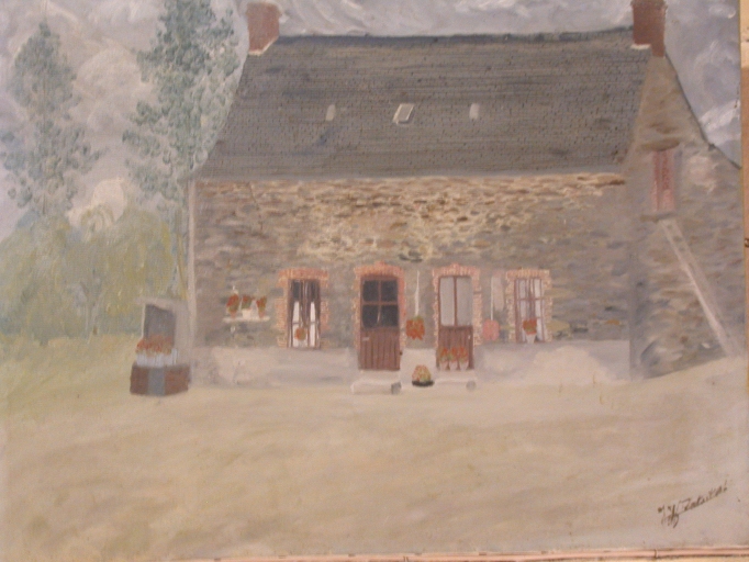 Tableau représentant le logis avec sa porte haute latérale pour accéder au grenierImmatriculation