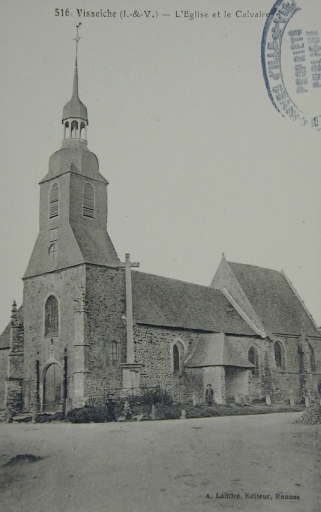 Carte postale, l'église et le calvaire, (A.D.Ille-et-Vilaine : 6Fi)Immatriculation