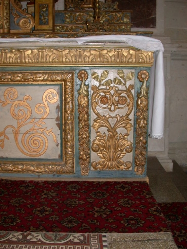 Ensemble du maître-autel : autel, tabernacle, exposition, 3 gradins d'autel, retable, 2 degrés d'autel,