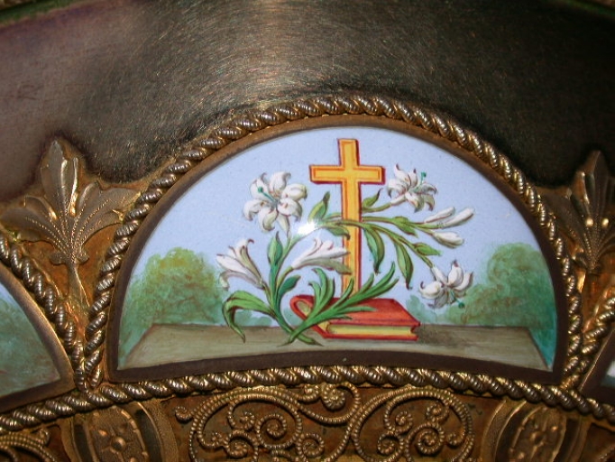 Décor de la coupe : croix et fleurs de lysImmatriculation