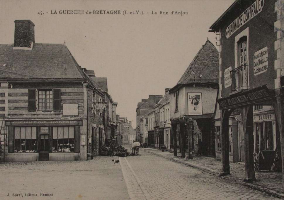 LA GUERCHE-de-BRETAGNE (I.-et-V.). La Rue d'Anjou. Carte postale, Rennes : J. Sorel, édit., [s.d.]. (A.D. Ille-et-Vilaine : 6 Fi)., Carte postale ancienne de la Rue d'Anjou