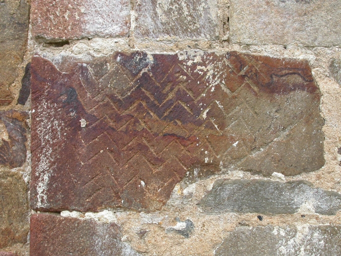 Détail de pierre portant des chevrons gravésImmatriculation