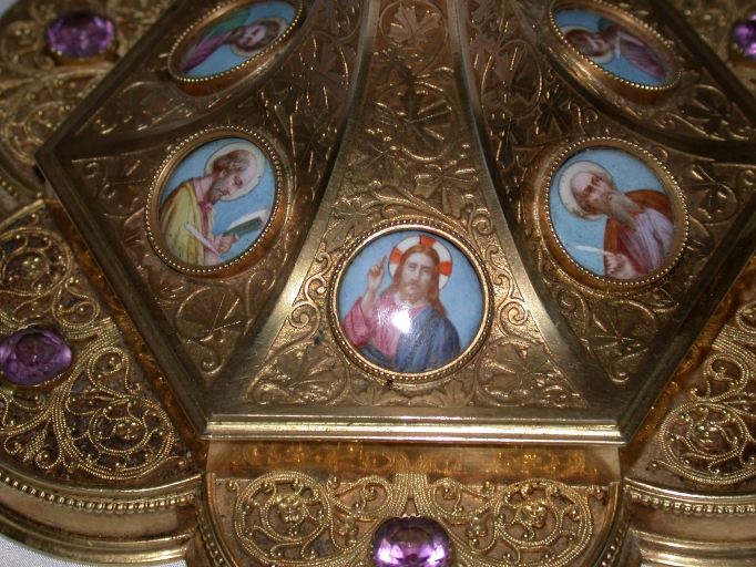 Décor du pied : Christ bénissant et deux évangélistesImmatriculation
