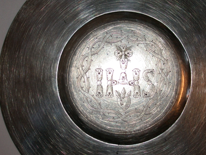 Décor : IHS, croix, couronne d'épinesImmatriculation