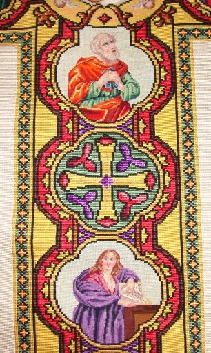 Décor de la croix (partie inférieure) : saint Pierre, croix et sainte Catherine de SienneImmatriculation