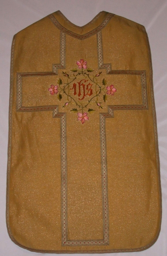 Ornement doré 3 : chasuble, bourse de corporal, étole, manipule,