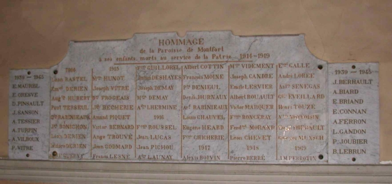 Tableau commémoratif des morts de la guerre 1914-1918 et de la guerre 1939-1945,