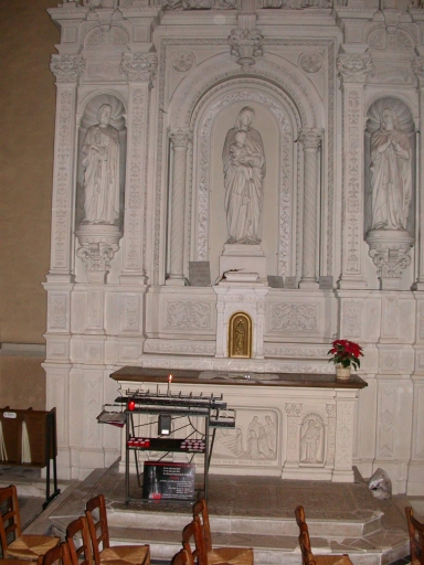 Ensemble de l'autel de la Vierge : autel, tabernacle, 2 gradins d'autel, retable, 2 degrés d'autel,