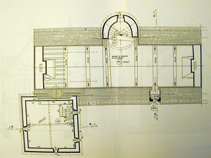 Plan des Combles, échelle 1/100. (Service départemental de l'architecture et du patrimoine).Immatriculation