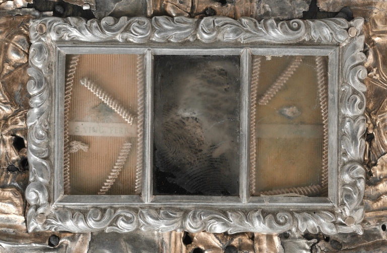 Reliquaire, face : les lunettes protégeant les reliques (état en 2004)Immatriculation