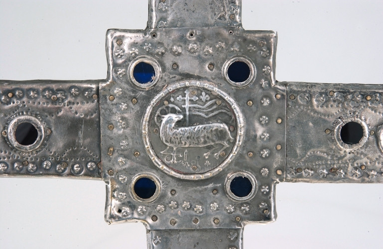 Croix de procession : revers, médaillon de l'agneau divinImmatriculation