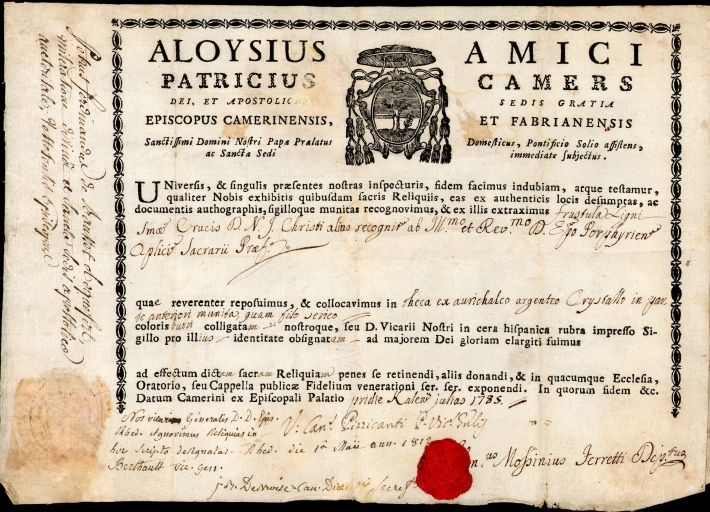 Croix-reliquaire : authentique des reliquesImmatriculation