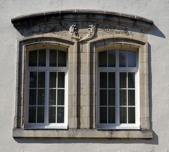 Elévation antérieure, fenêtres jumelées.Immatriculation