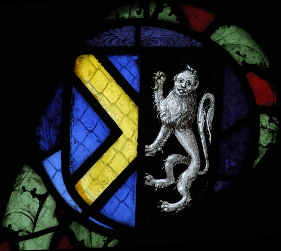 Chapelle Notre-Dame de Locmaria, baie 4, détail du blason.Immatriculation