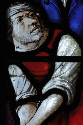 Chapelle Notre-Dame de Locmaria, baie 0, détail de la Crucifixion, 2e registre.Immatriculation