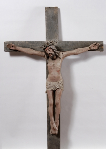 Croix : Christ en croix, place Ernest Lemoine (Bieuzy fusionnée en Pluméliau-Bieuzy en 2019),