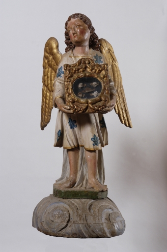 Ensemble de deux anges statues-reliquaires (statues de procession), place Ernest Lemoine (Bieuzy fusionnée en Pluméliau-Bieuzy en 2019),