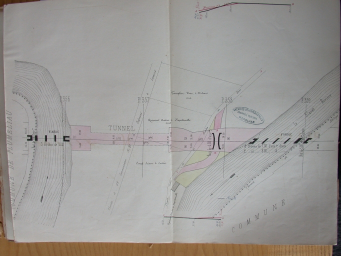 Plan des tracés de la voie de chemin de fer, aux abords de Castennec, 29 /10/1863 (A.D. Morbihan, série S 286).Immatriculation