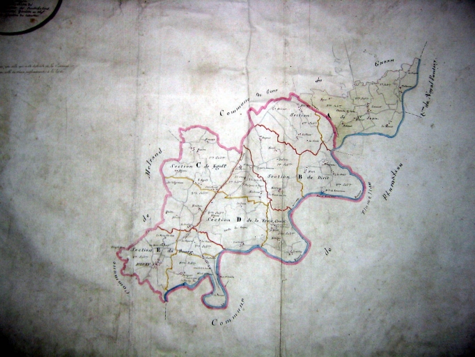 Plan cadastral 1828, plan d'assemblage (Doc. A.C. Bieuzy)Immatriculation