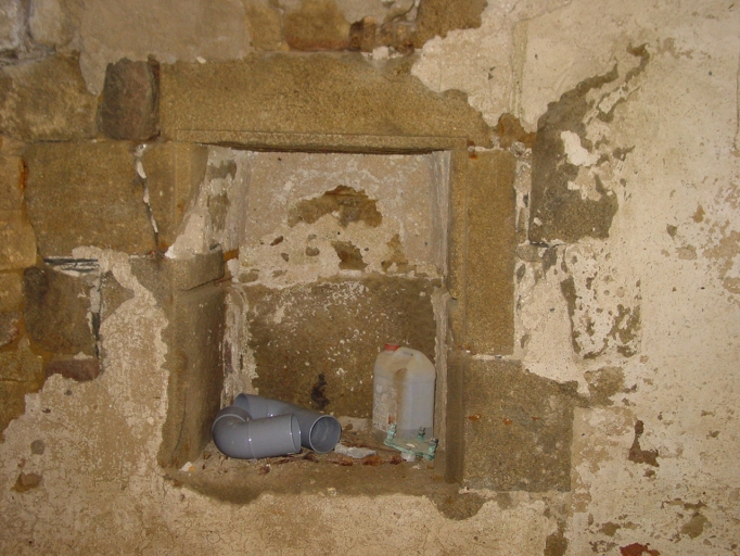 RDC, la cuisine, détail placard mural à gauche de la cheminée (bouchée) dans mur de refendImmatriculation