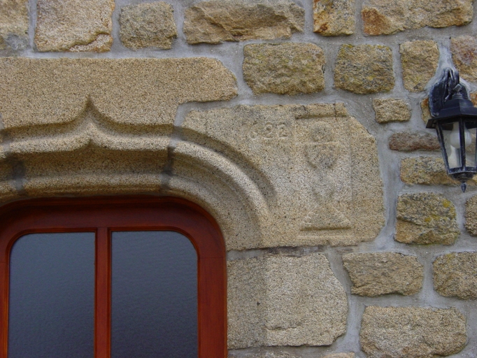 Détail linteau sculpté de l'ancienne porte haute, actuellement à RDC.Immatriculation