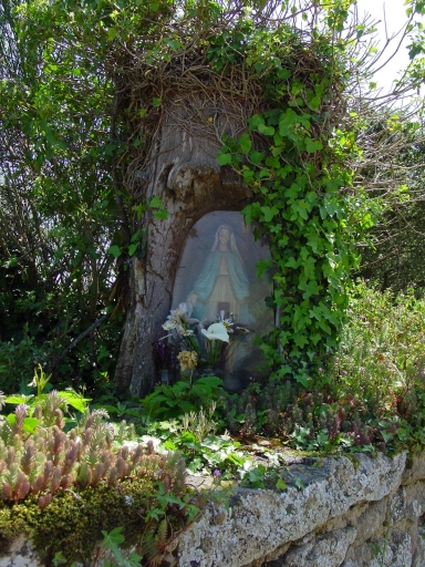 Grotte de Lourdes aménagée dans un tronc, sur le mur de clôture à l'ouest de la parcelle ZR 242. Non repérée.Immatriculation