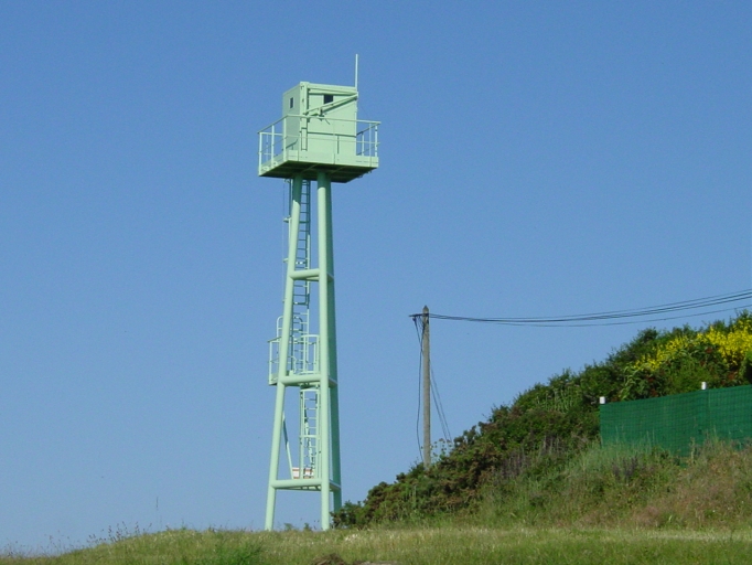 Tour métallique du fanal du champ de tirs construit au sommet d'une dune, au sud du village. Propriété de l'Armée. ZS 129.Immatriculation