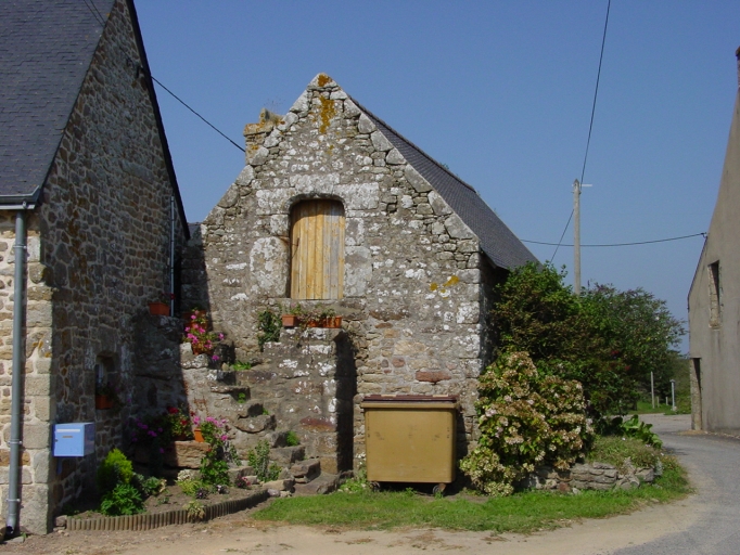 Penhoët, grange fournil du 17e siècle. Parcelle ZC 131, ferme non repérée. Pignon sud avec escalier extérieur et porte haute.Immatriculation