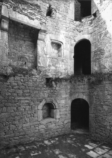 Ancien logis, vue intérieure prise du nord-est, avec départ de l'escalier dans la tour. Etat en 1978.Immatriculation