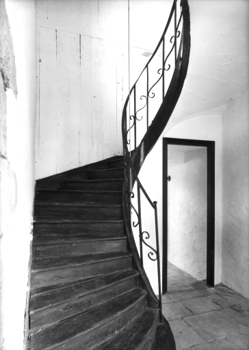 Corps de logis principal, rez-de-chaussée, escalier secondaire. Etat en 1978.Immatriculation