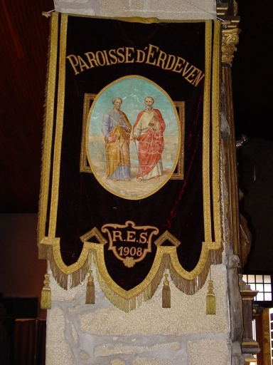 Bannière n°1 à l'effigie des patrons de la paroisse, datée 1908.Immatriculation