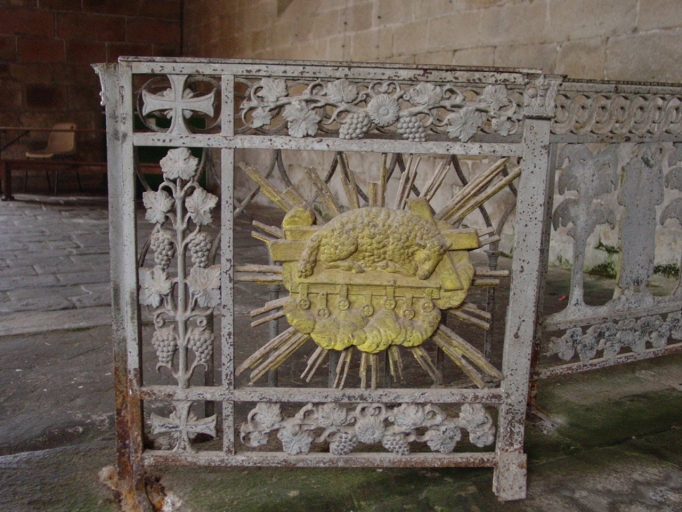 Détail portillon gauche, panneau de l'agneau dans une gloire.Immatriculation