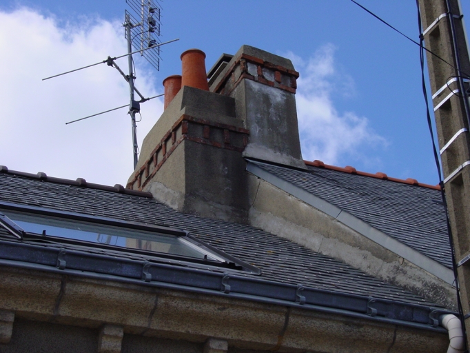 Détail souches de cheminées.Immatriculation