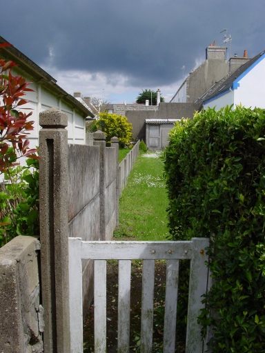 Détail clôture séparant le jardin primitif en deux longues parcelles. Vue vers l'est.Immatriculation