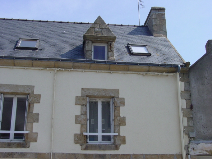 Façade du n°5. Détail pignon et lucarne.Immatriculation