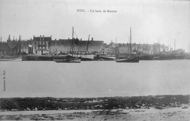 Vue générale sur les quais d'Etel depuis Plouhinec. Au centre la criée. Carte postale vers 1920.Immatriculation